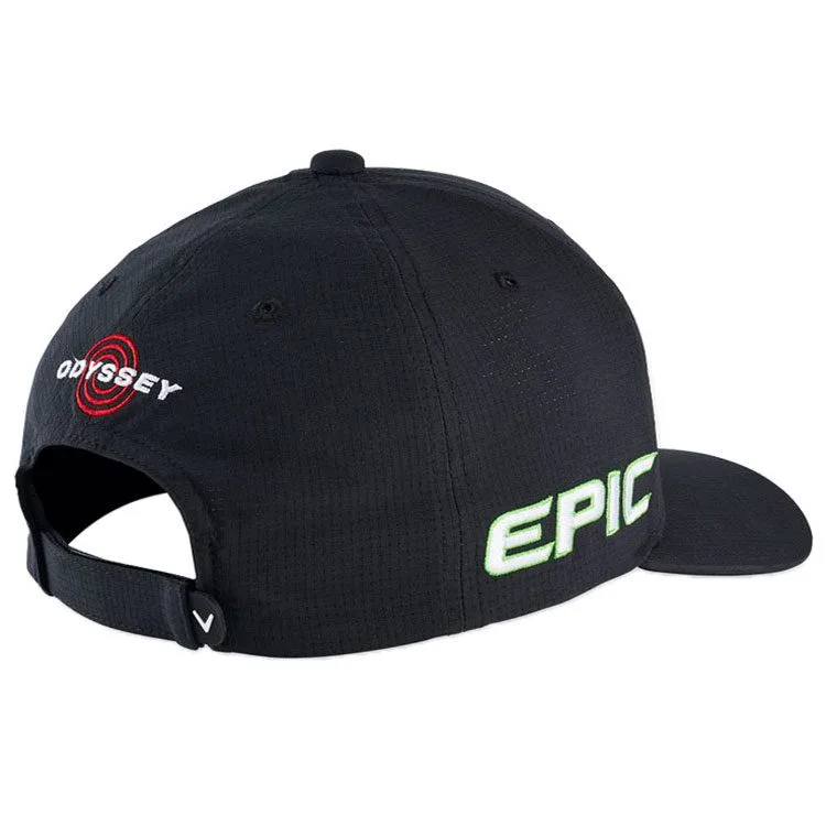 The Callaway TA Performance Pro Cap is tour worn headwear featuring an adjustable back design with Callaway, Epic, Apex, Chrome Soft and Odyssey tour branding & logos.